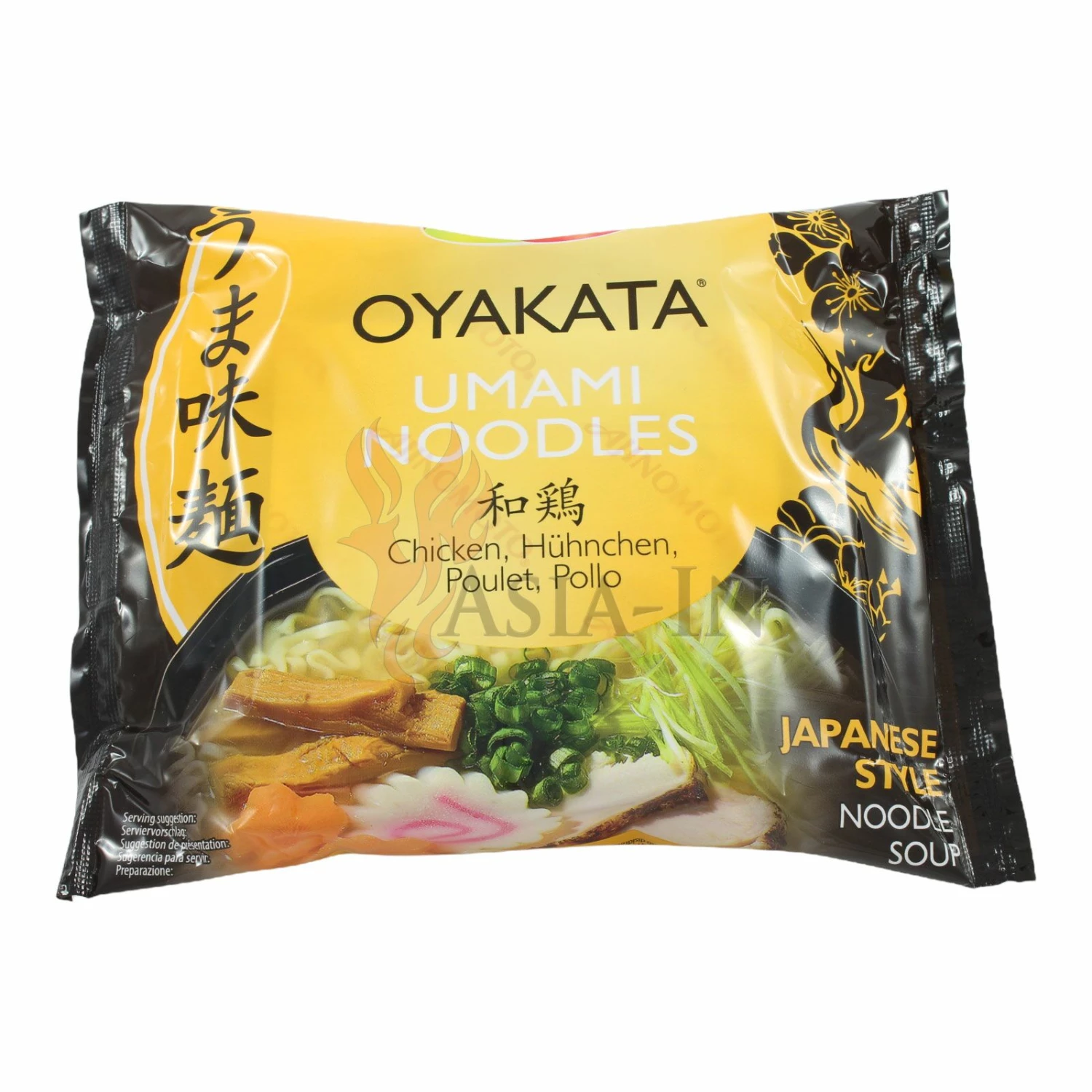 | Zutaten: | Nudeln: Weizenmehl, Palmöl, Modifizierte Stärke, Salz, Backtriebmittel: Natriumcarbonate E500, Backtriebmittel: Kaliumcarbonate E501 Würzmischung: Geschmacksverstärker: Mononatriumglutamat E621, Geschmacksverstärker: Dinatrium-5’-ribonucleotid E635, Salz, Hühnerfleischextraktpulver, 14% (Hühnerfleischextrakt, 45%, Maltodextrin, Salz), Aroma, Maltodextrin, Zucker, Gemahlener, Knoblauch, Sojasaucenpulver (Soja, Weizen, Maltodextrin, Salz), Hefeextrakt, Sesamkörner, Hühnerfett, 1,8%, Gemahlener, Ingwer, getrockneter Schnittlauch, schwarzer Pfeffer, Farbstoff: Ammoniak-Zuckerkulör E150c, Farbstoff: Kurkumin E100, Säuerungsmittel: Citronensäure E330 |