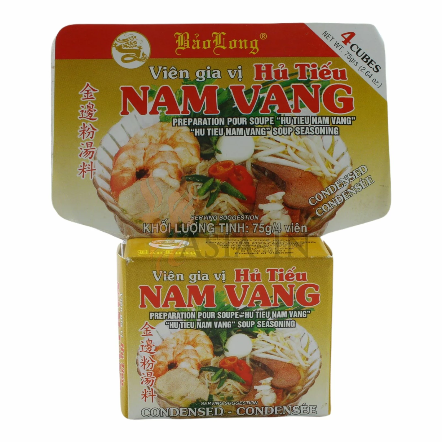 Hier kommt ein echter geschmacklicher Volltreffer für Ihre Suppenschüsseln! Die vietnamesische Hu Tieu Nam Vang Suppe gehört gleichermaßen zu den Klassikern der vietnamesischen Küche wie auch zu den Exoten für alle, die ehr der europäischen Küche zugetan sind. So oder so: Hu Tieu Nam Vang ist ein echter Gaumenschmaus, dank Zwiebeln, Knoblauch und weiteren geschmackvollen Zutaten ein echter Gaumenschmaus, den Sie auch noch super-schnell zubereiten können. Ja, Sie können Hu Tieu Nam Vang kochen, indem sie einfach Wasser aufkochen. Den Rest besorgt der reichhaltige Bouillonwürfel von Bao Long, den Sie einfach im kochenden Wasser auflösen können. Schnell verbreitet die Hu Tieu Nam Vang Suppe ihren aromatischen duft, der Lust auf mehr macht. Apropos mehr: Mehr können Sie machen, wenn Sie der Hu Tieu Nam Vang Suppe Schweinefleisch und/oder Reisnudeln hinzufügen. Auch für das Anreichern Ihrer Saucen ist ein Bouillonwürfel gut geeignet und gibt dem Endergebnis einen herzhaften, intensiven Geschmack.