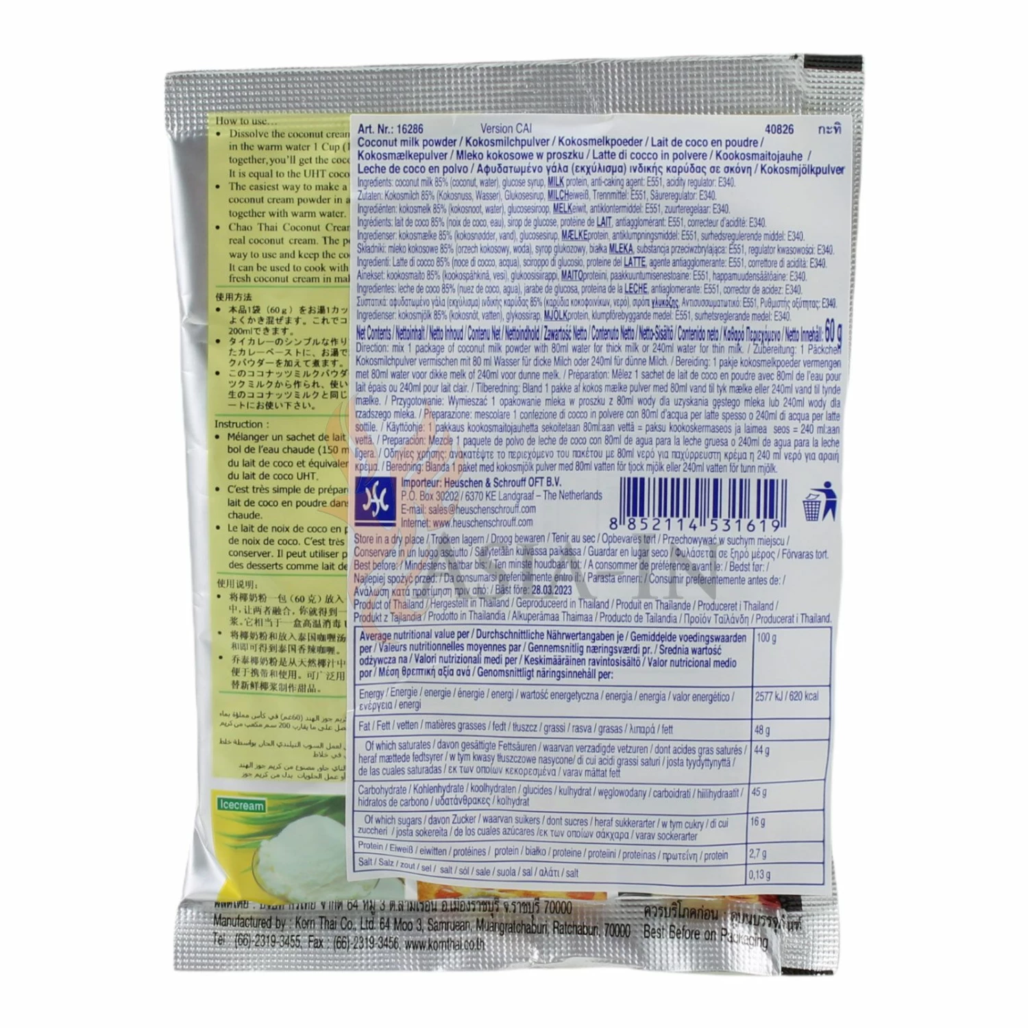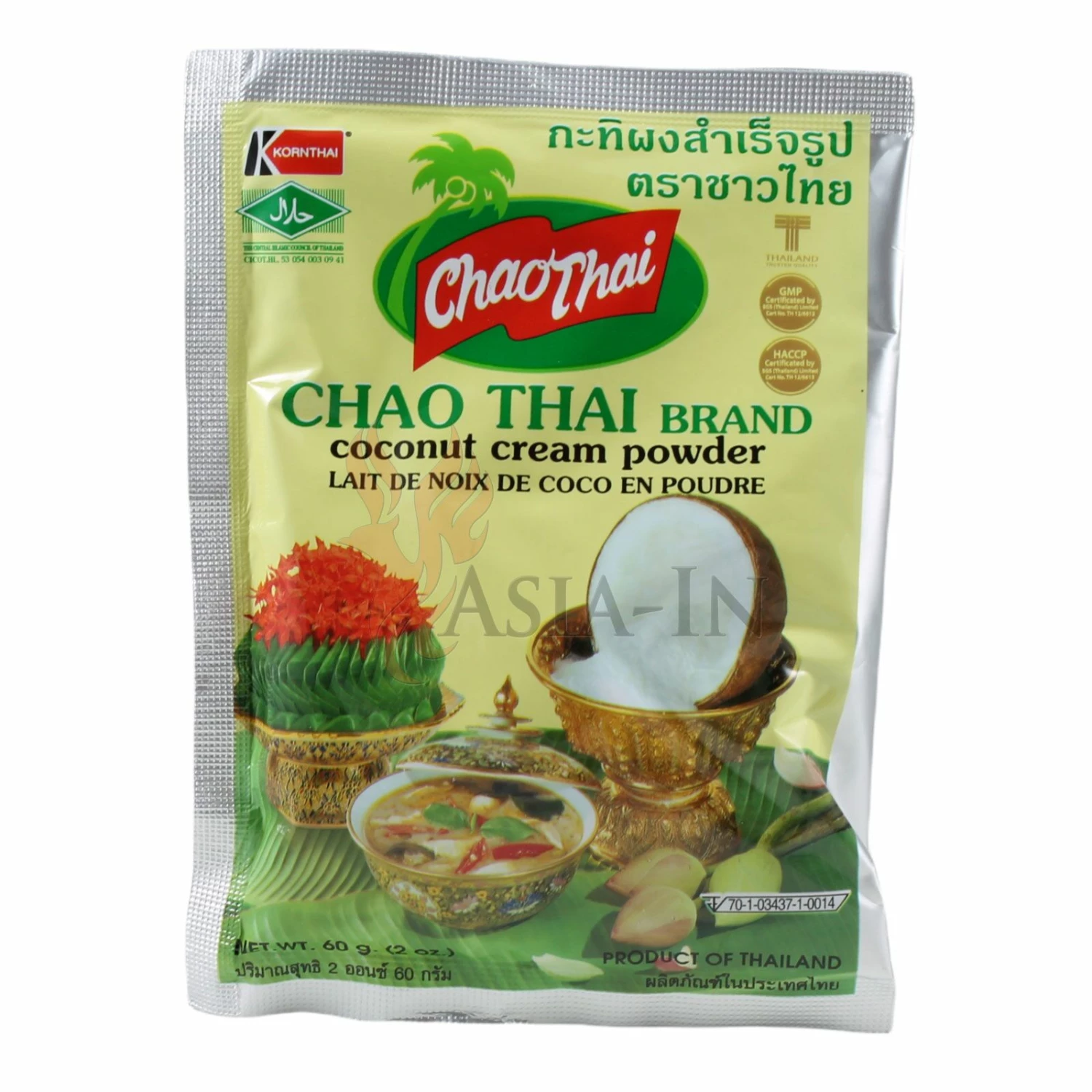 Aus den bekannten Hause Chao Thai beziehen wir für unseren Asia Food Online Shop echtes asiatisches Kokosnuss Creme Pulver zum Kochen. Das Pulver besteht hauptsächlich aus getrockneter Kokosnuss und kann durch Aufguss heißen Wassers in vollmundige Kokosnuss Creme verwandelt werden. Als solche ist dieses Produkt eine hervorragende Basis zum Kochen verschiedener asiatischer Gerichte.