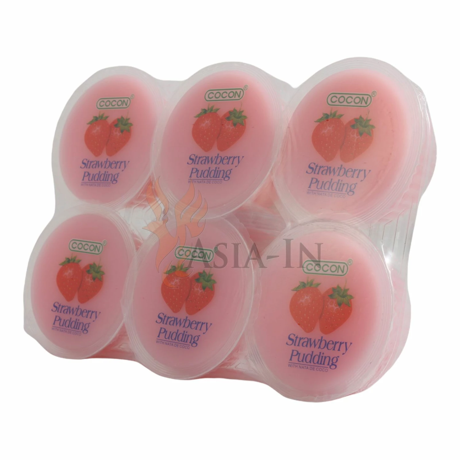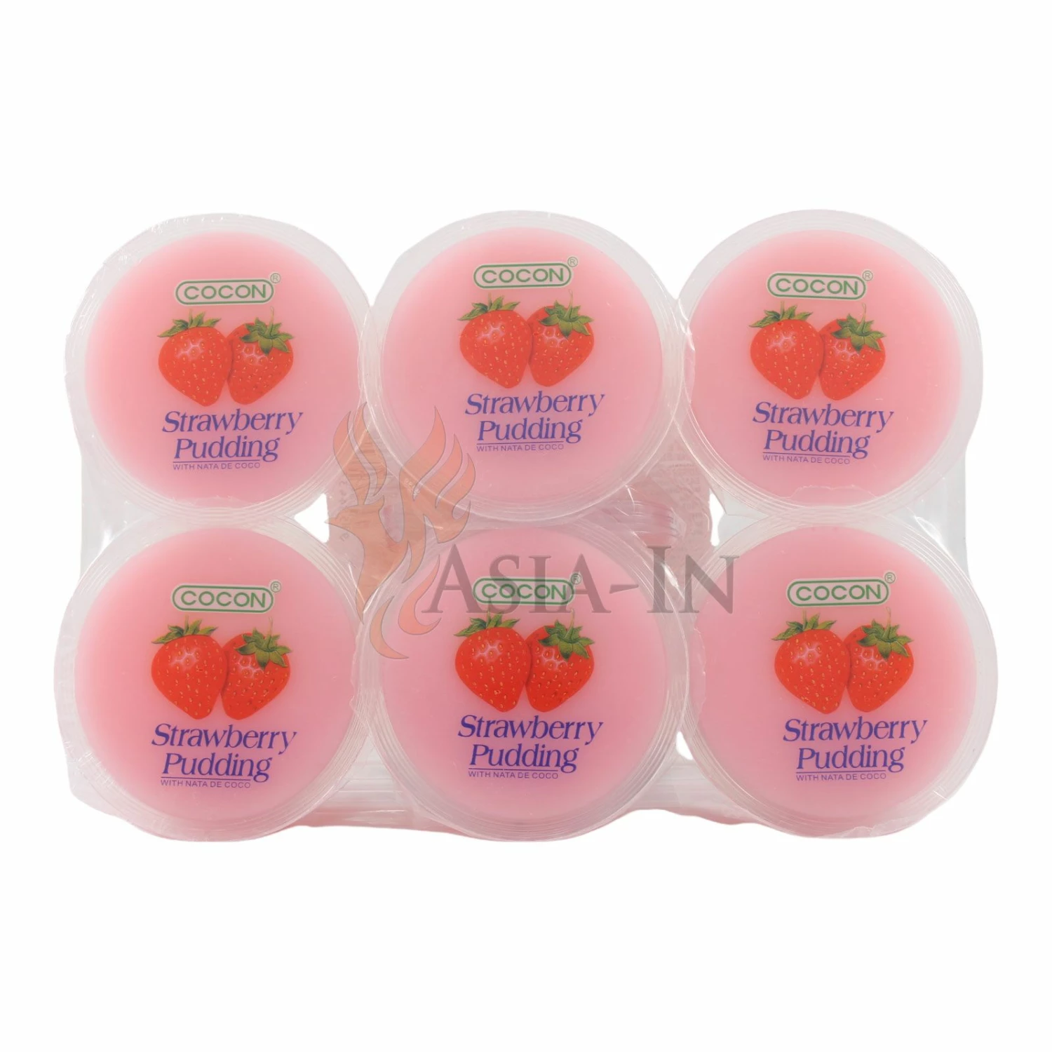 Asiatische Küche ist herrlich und genussvoll vom ersten bis zum letzten Bissen, bzw. vom ersten bis zum letzten Gang. Und genau diese letzten Gang bescheren Sie sich, wenn Sie diesen Cocon Erdbeer Pudding mit Nata de Coco bestellen. Ja, die Asia-Küche versteht sich anscheinend auf alles und macht auch vor leckeren Nachspeisen nicht Halt. Asiatische Nachspeisen sind oftmals sehr süß, um einen Kontrast zum oftmals sehr würzigen, herzhaften Hauptgericht herzustellen. So machen es auch die Cocon Erdbeer Puddings, von denen Ihnen dieses Produkt gleich sechs an der Zahl einbringt. Die Puddings aus Malaysia sind in gut verschweißte Pudding-Cups eingefüllt und zudem auch mit extra-mitgelieferten Löffeln ausgestattet. So können Sie die Cocon Erdbeer Puddings praktisch direkt verspeisen und den erfrischend-süßen Erdbeergeschmack direkt genießen. Verfeinert wird der Pudding um kleine gelee-artige Erdbeerstückchen, die einen angenehmen, exotischen Kokosgeschmack haben. Einfach ein ganz besonderer Dessert-Genuss!