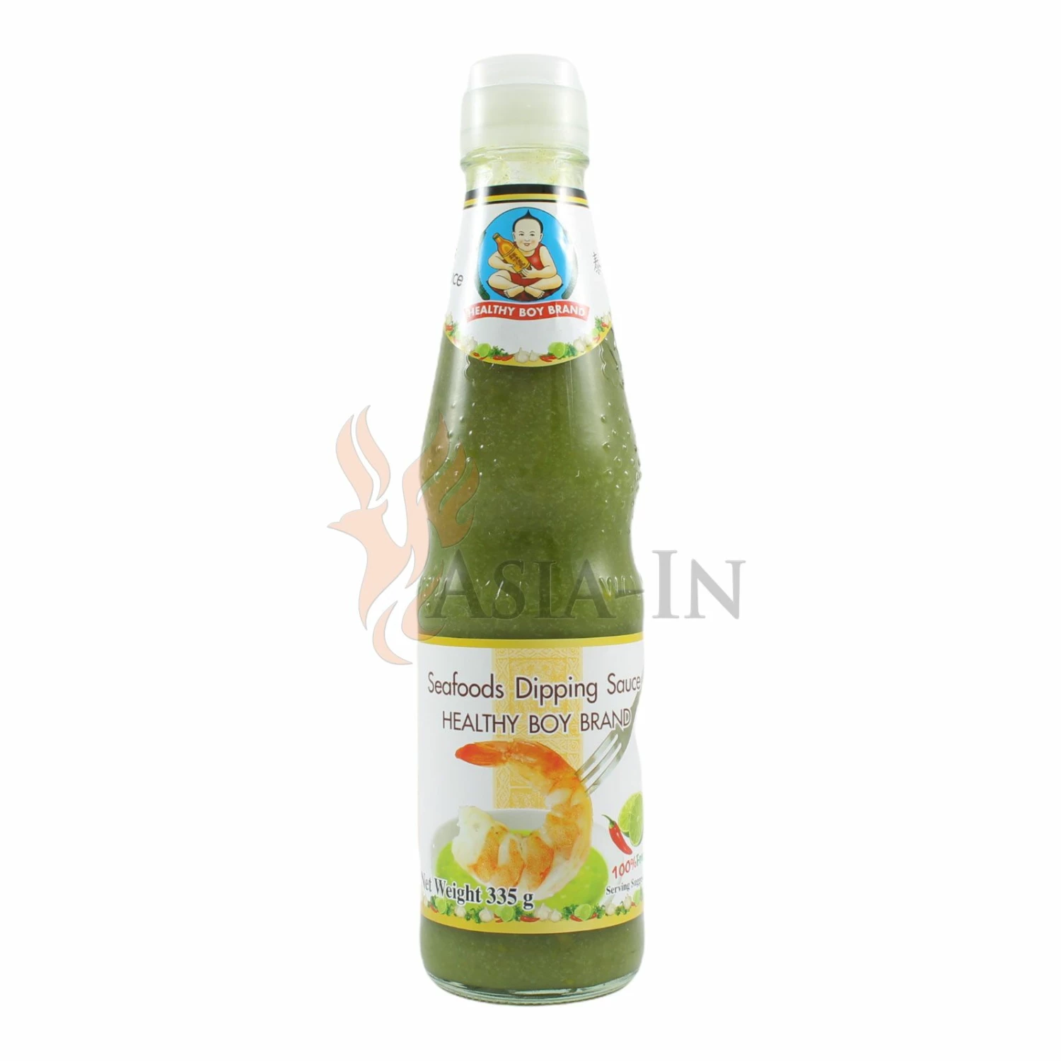 In der asiatischen Küche setzt man viel und natürlich auch sehr gerne auf vollmundige Würzsaucen. Wie auch die Fisch und Meeresfrüchte Dip Sauce können die vielseitigen Saucen sowohl zum Kochen als auch später, zu den fertigen Gerichten, zum Verfeinern und Nachwürzen verwendet werden. Dabei nimmt jede Würzsauce eine gewisse Nische ein, wobei wohl nur die Basis-Sojasauce eine Allzweck-Waffe fürs Würzen von so gut wie allen pikanten Speisen ist. Fisch und Meeresfrüchte Dip Sauce ist nicht so eine Allzweck-Sauce, dafür aber in der Nische, die sie besetzt genau die richtige Sauce. Sie passt vor allem – wie der Name schon sagt – zu Fischgerichten und Meeresfrüchten. Hergestellt vom bekannten Hersteller Healthy Boy, ist die Fisch und Meeresfrüchte Dip Sauce bestehend aus Limetten (daher sicherlich die auffällige Farbe), Chilischoten, Knoblauch und dem indischen Gewürz Koriander. In dieser Mischung fühlen Fisch und Meeresfrüchte sich pudelwohl, aber auch für kalte Salate mit Meeresfrüchten oder Gegrilltes ist die Sauce bestens geeignet.