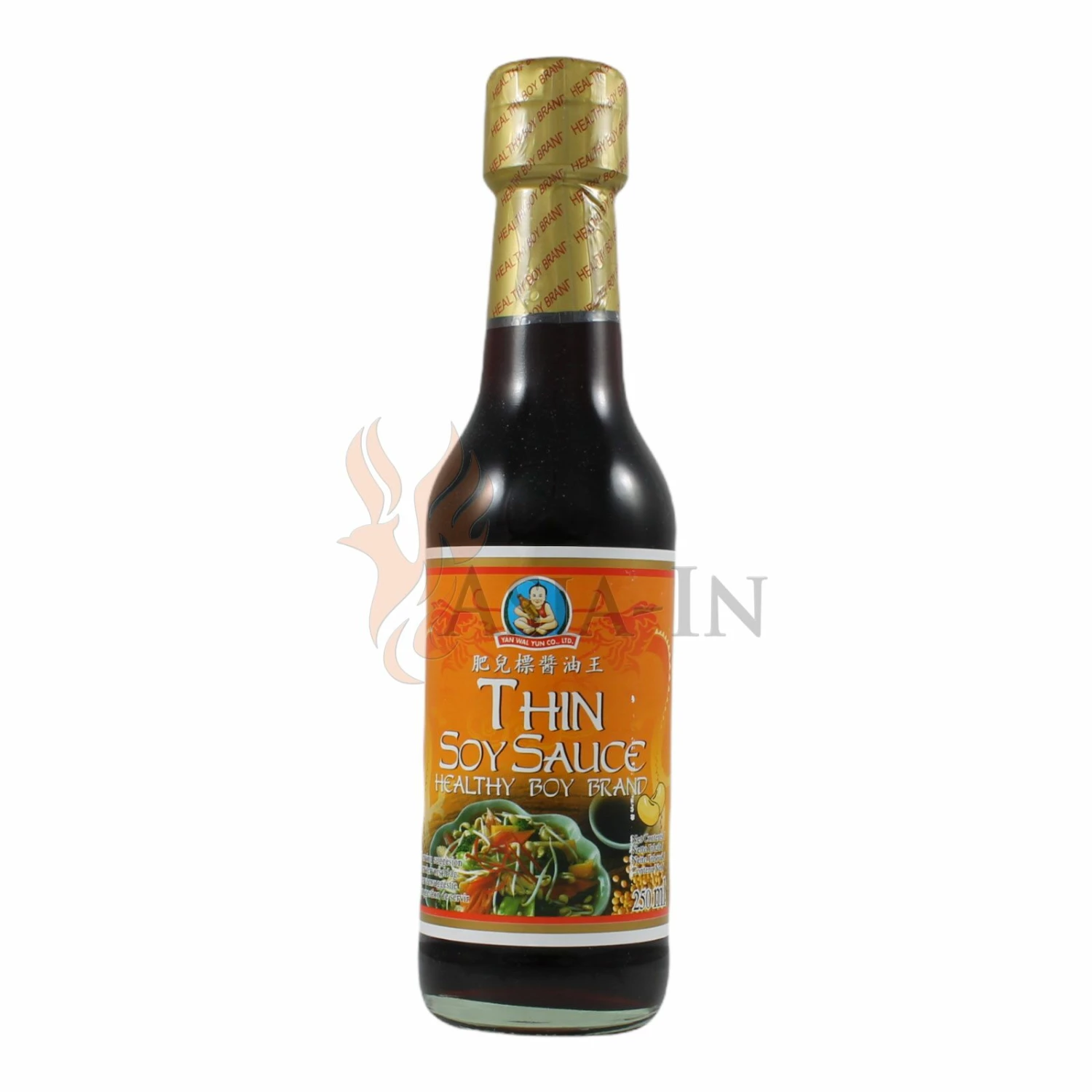 Und es gibt eine ganze Menge verschiedener Soja Saucen, gerade vom bekannten thailändischen Saucen-Hersteller Healthy Boy, aus dessen Sortiment wir natürlich auch eine ganze Menge in unseren Online Shop übernommen haben. Somit haben Sie ein großes Angebot an vielen verschiedenen Würzsaucen von Austernsauce über Fischsauce bis hin zu dieser würzigen Sojasauce.