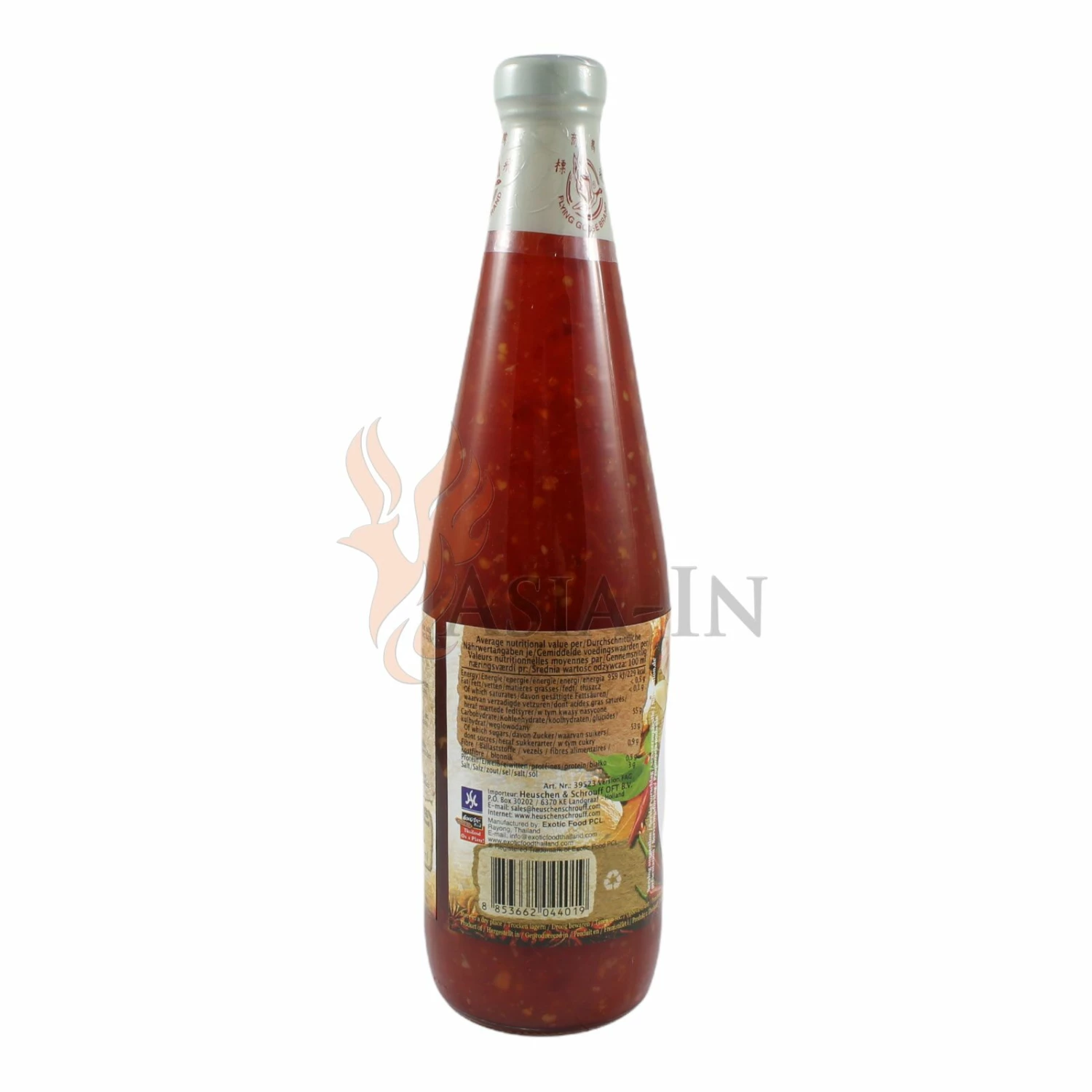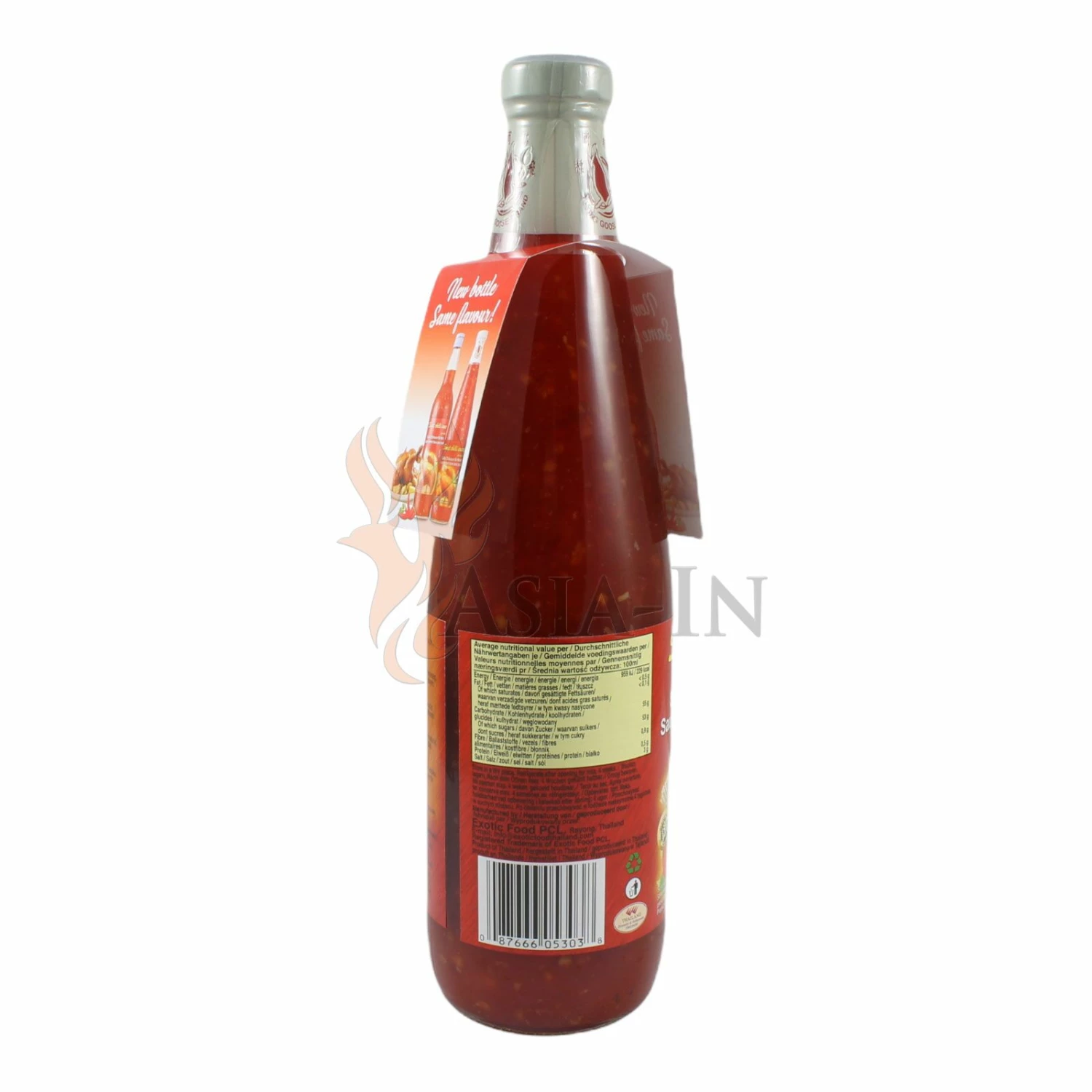 | Zutaten: | Zuckersirup, Chili, 22%, Knoblauch, Branntweinessig, Wasser, Salz, Modifizierte Tapiokastärke, Säuerungsmittel: Citronensäure E330, Säuerungsmittel: Essigsäure E260, Verdickungsmittel: Xanthan E415 |