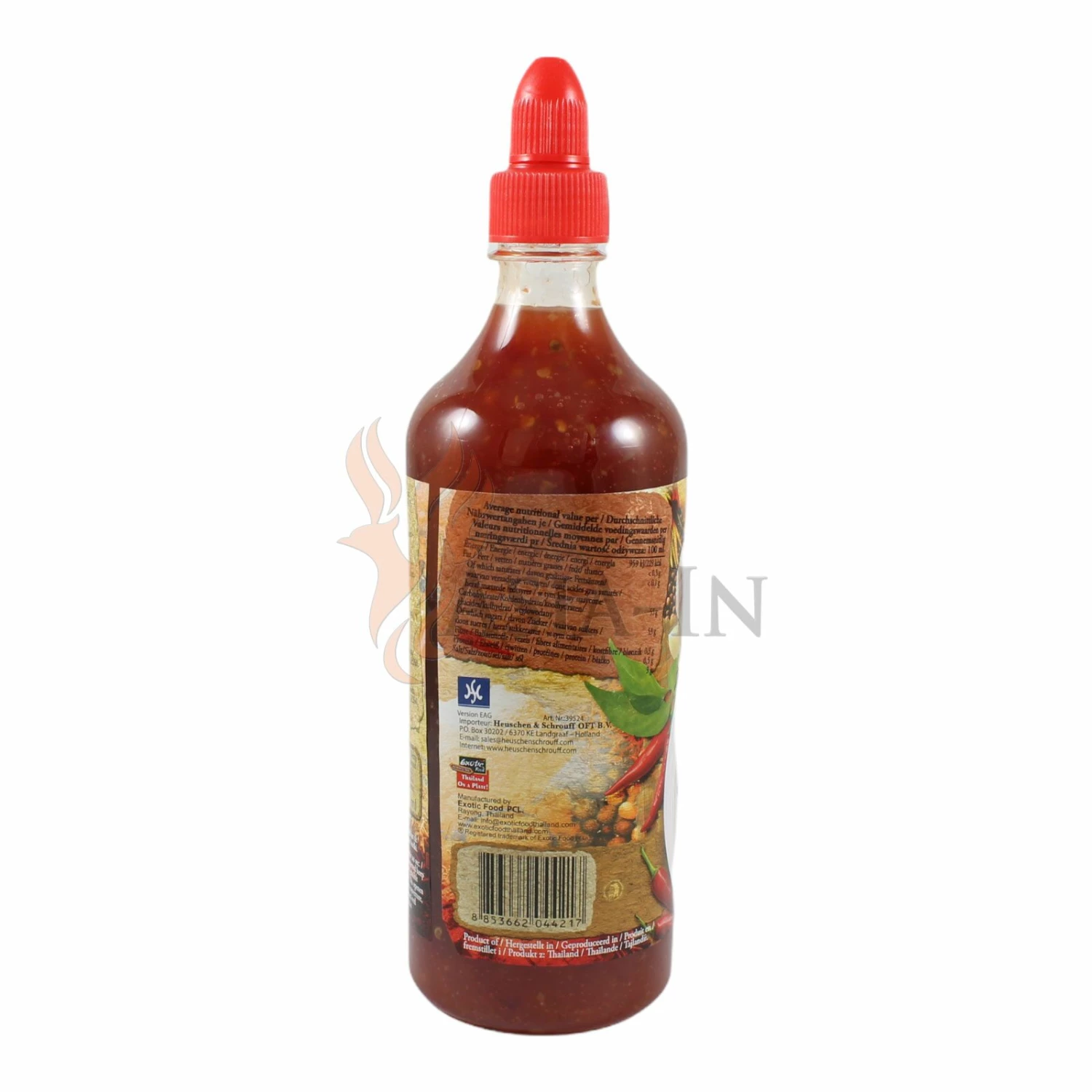 | Zutaten: | Zuckersirup, Chili, 22%, Knoblauch, Branntweinessig, Wasser, Salz, Modifizierte Tapiokastärke, Säuerungsmittel: Citronensäure E330, Säuerungsmittel: Essigsäure E260, Verdickungsmittel: Xanthan E415, Konservierungsstoff: Kaliumsorbat E202 |