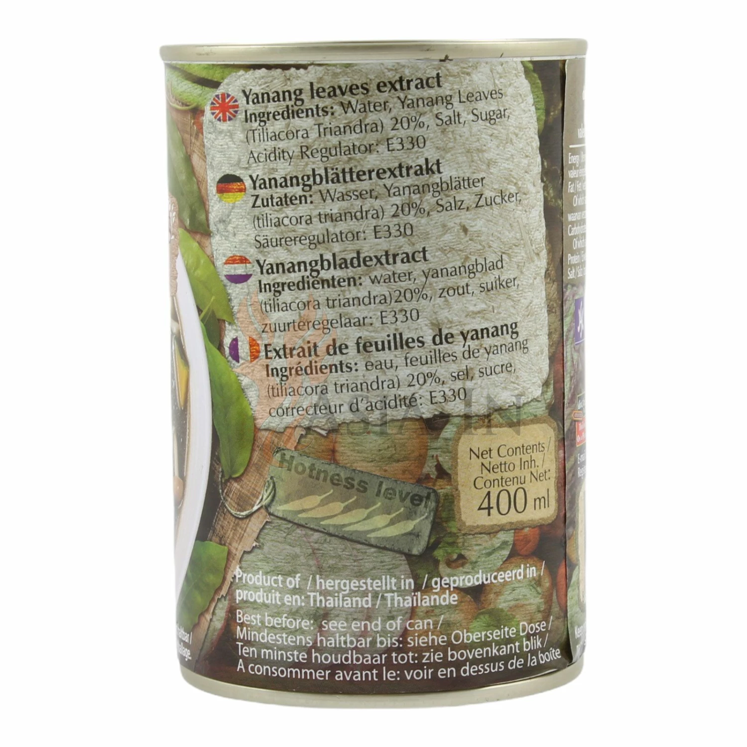 | Zutaten: | Wasser, Yanangblätter (Tiliacora triandra), 20%, Salz, Zucker, Säuerungsmittel: Citronensäure E330 |