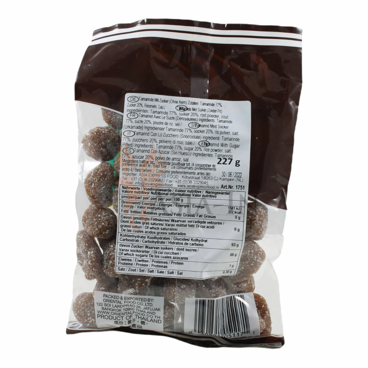 | Zutaten: | Tamarinden 77%, Zucker, 20%, Reismehl, Salz |