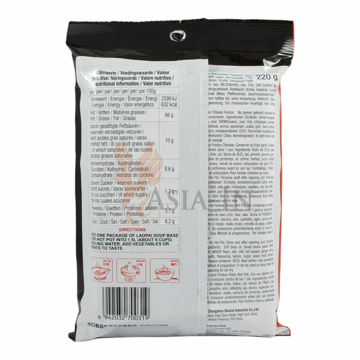 | Verantwortlicher Unternehmer: | AsiaExpressFood, Kilbystraat 1, 8263, CJ Kampen, Niederlande |