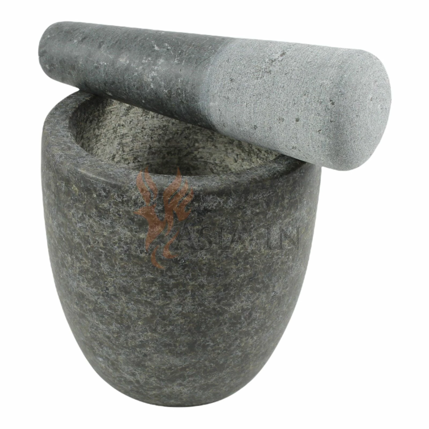 Jade Temple Steinmörser Mit Stößel, 12×11,5cm, Aus Granit