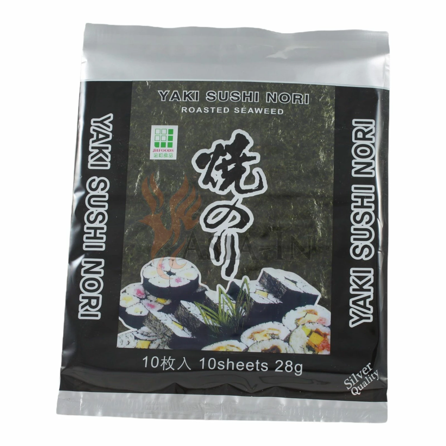 Dafür wird der Tang zu Nori verarbeitet, sprich getrocknet und geröstet. Dabei entstehen die charakteristischen dunkelgrünen Quadrate, in die dann Reis, Fisch, Wasabi & Co. eingerollte werden können. Alternativ eignen sich die Yaki Nori Blätter natürlich auch für ähnliche Zubereitungsarten, wie Temaki, Nigirizushi oder Furikake.
