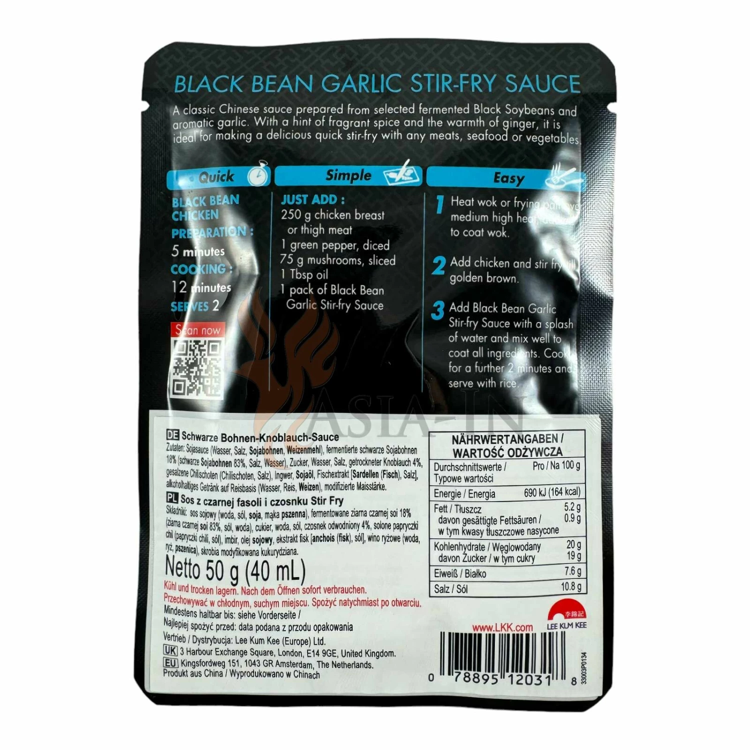 | Zutaten: | Sojasauce (Wasser, Salz, Sojabohnen, Weizenmehl), fermentierte Schwarze, Sojabohnen, 18% (Schwarze, Sojabohnen, 83%, Salz, Wasser), Zucker, Wasser, Salz, getrockneter Knoblauchpüree, 4%, Gesalzene, Chilischoten (Chilischoten, Salz), Ingwer, Sojaöl, Fischextrakt (Sardellen (Fisch), Salz), Alkohol (Wasser, Reis, Weizenmehl), Modifizierte Maisstärke |