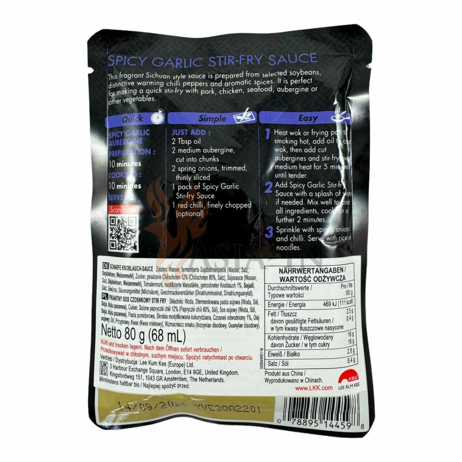 | Zutaten: | Wasser, fermentierte Sojabohnenpaste (Wasser, Salz, Sojabohnen, Weizenmehl), Zucker, Gesalzene, Chilischoten, 12% (Chilischoten, 80%, Salz), Sojasauce (Wasser, Salz, Sojabohnen, Weizenmehl), Tomatenmark, Modifizierte Maisstärke, getrockneter Knoblauch, 1%, Sojaöl, Salz, Gewürze, Säuerungsmittel: Milchsäure E270, Geschmacksverstärker: Dinatriuminosinat E631, Geschmacksverstärker: Dinatriumguanylat E627 |