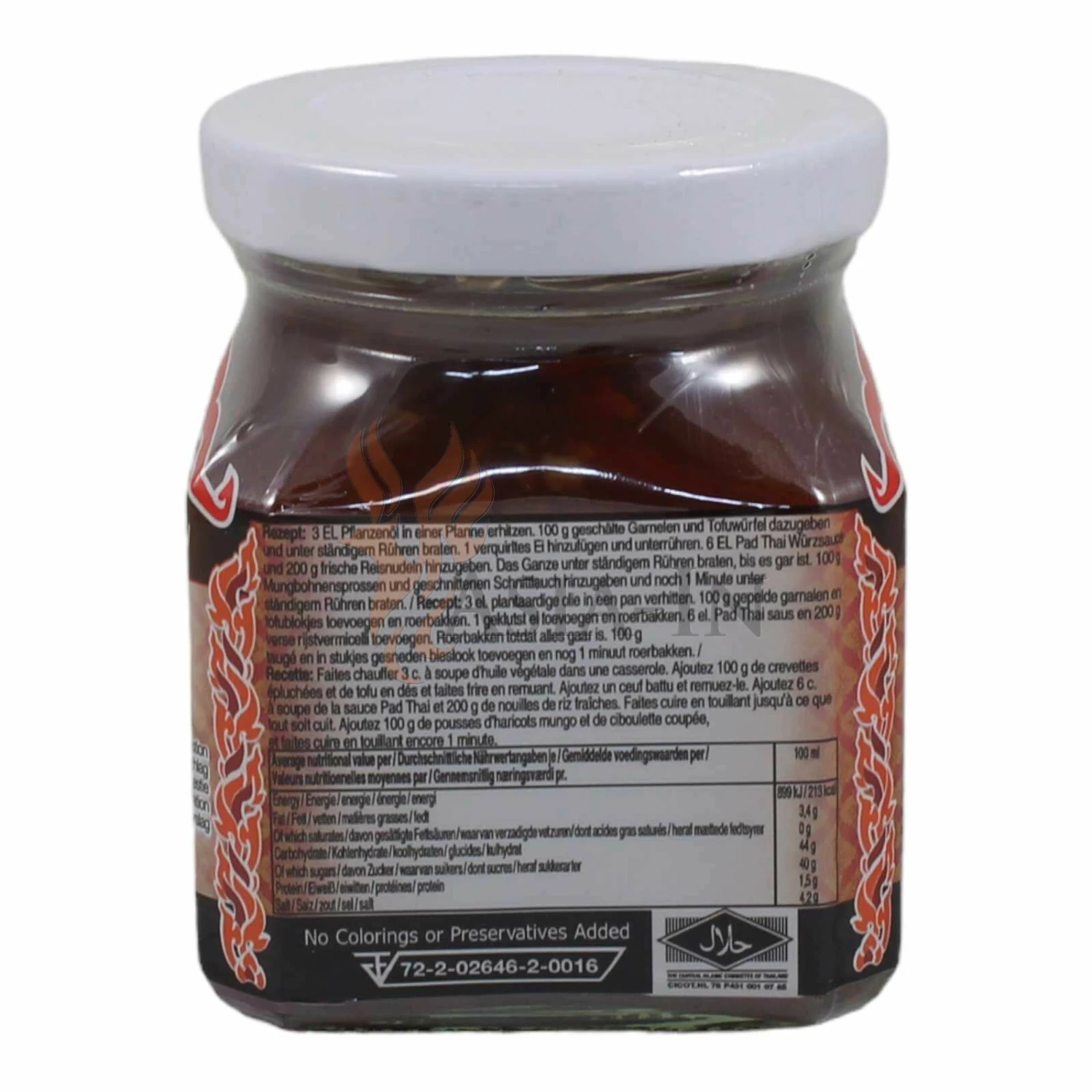 | Zutaten: | Zucker, Tamarindenpaste (Tamarinden, Wasser), Schalotten, Fischsauce (Sardellenextrakt, Salz, Zucker), Tomatenmark, Knoblauch, Sojaöl, Branntweinessig, Salz, Aroma |