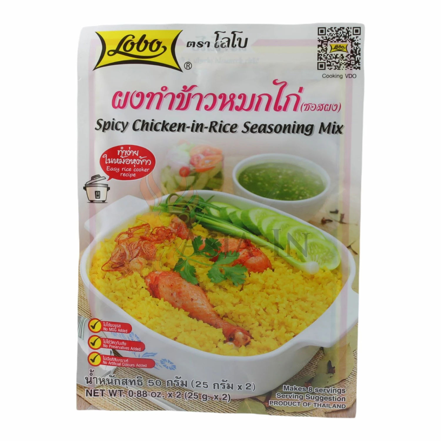 Pikantes Huhn in Reis, als ‚Chicken-In-Rice‘ zu großer Bekanntheit gelangt, stammt aus dem nordwestlichen Indien. Dort, wo Huhn und Reis gerne auch mit Curry verbunden werden, entstand eine von vielen Reis-Huhn-Kombinationen. Mit unserer Würzmischung vom bekannten thailändischen Hersteller Lobo können Sie den Reis zum Chicken-In-Rice selbst zubereiten. Einfach während des Reiskochens die Gewürzmischung mit unterrühren und die Verfeinerung mit allen Sinnen genießen.