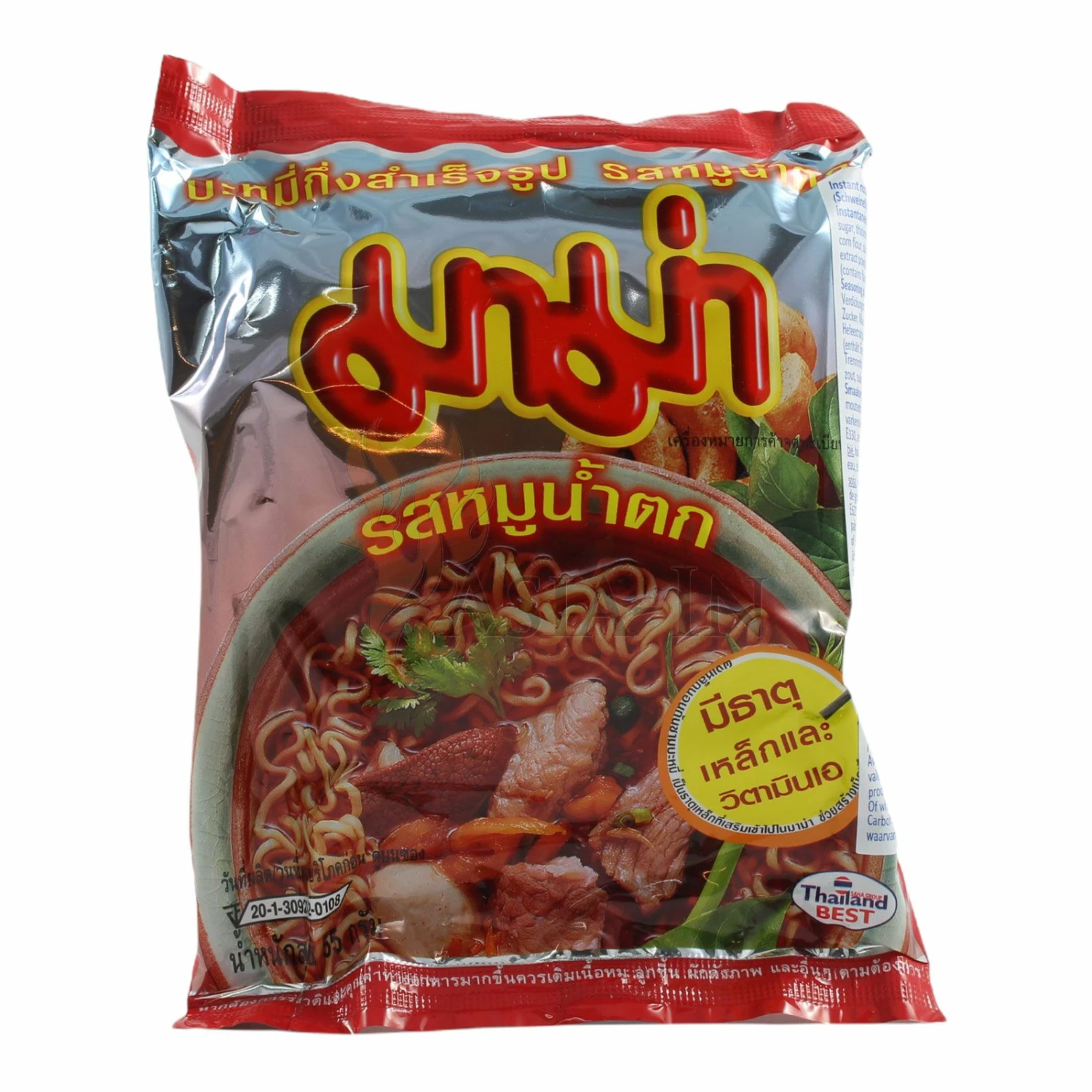 Moo Nam Tok sind drei Worte mit einer Fülle an Aromen, die man glaubt kaum zubereiten zu können. Aber mit der Instant Nudel Suppe von MAMA geht das ganz einfach. Für die Zubereitung der Schwein Moo Nam Tok Suppe benötigen Sie lediglich eine Schüssel und heißes Wasser, in dem Sie die Ramennudeln und die Würzmischung quellen lassen. Aber was zeichnet eigentlich den typischen Moo Nam Tok Geschmack aus? In der thailändischen Küche versteht man unter Nam Tok, was wörtlich übersetzt „Wasserfall“ bedeutet, entweder einen scharfen Salat oder eine gehaltvolle Suppe jeweils mit Schweinefleisch. MAMA bringt die scharfe Suppe als unkomplizierten Snack für zwischendurch auf den Markt. Der Hersteller vereint in seiner Instant Nudel Suppe die Geschmacksnoten von Sojasauce, Chili, Koriander, Lauch und anderen Gewürzen. Wem die Schärfe nicht ausreicht, kann mit Extra-Chilipulver nachwürzen. Dieses ist in der 55 g Packung enthalten. Wenn Ihnen jetzt das Wasser im Mund zusammenläuft, sollten Sie besser direkt bei uns bestellen.