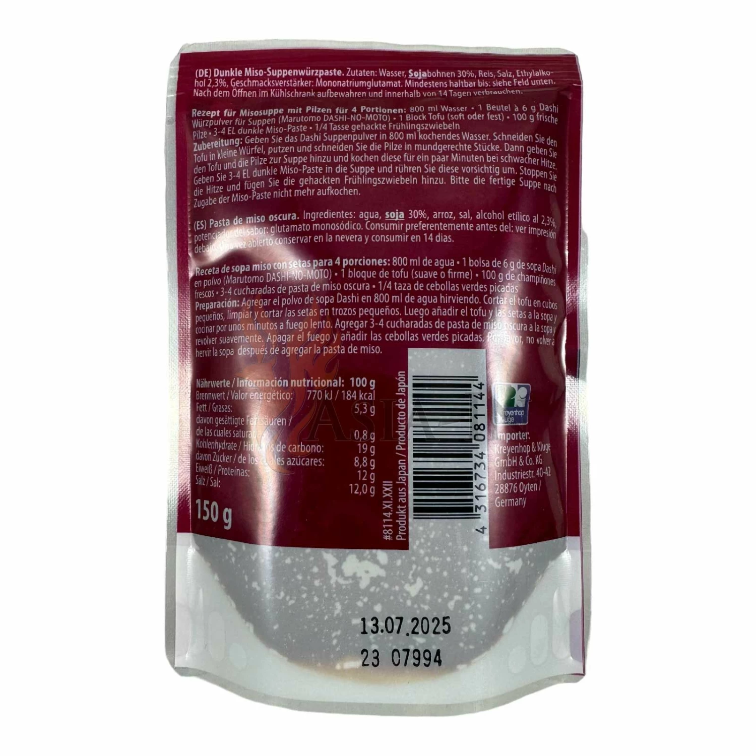 Die dunkle Misopaste von Miyako zeichnet sich durch ihre reiche, komplexe Aromenvielfalt aus, die jedem Gericht eine unverkennbar tiefe und würzige Note verleiht. Ob als Basis für eine herzhafte Miso-Suppe, als Geheimzutat in Marinaden oder als raffinierter Twist in Dressings – diese Misopaste ist ein wahrer Alleskönner in der Küche.