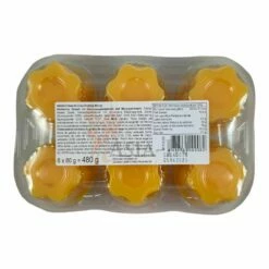Pudding, genauer gesagt Mango Pudding mit Nata de Coco ist ein herrlicher Nachtisch, den Sie am besten gekühlt, frisch aus dem Kühlschrank genießen. 6x 80 Gramm der süßen Versuchung erwarten Sie in diesem süßen Gesamtpaket und jeder Becher ist voller Hochgenuss. Mango Pudding mit Nata de Coco passt sehr gut als Abrundung eines vollmundigen Menüs, am besten nach besonders herzhaften Speisen. Besonderes Highlight sind die feinen Mango-Stückchen. Die süße Versuchung genießen Sie ganz einfach, im Handumdrehen aus dem Schälchen oder transferieren den Pudding vorher auf einen separaten Teller.