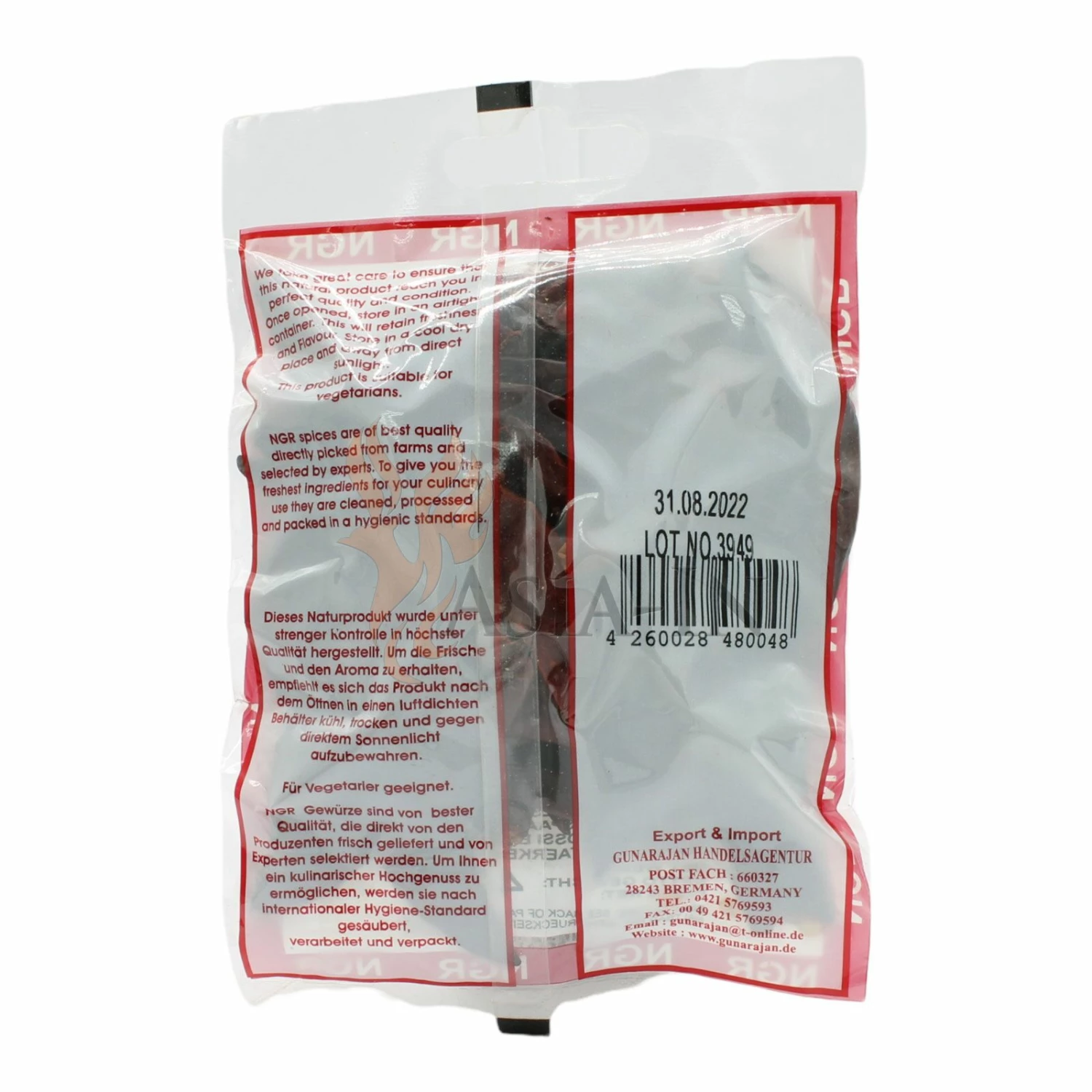 NGR Chili Getrocknet, Scharf, Ganz 40g