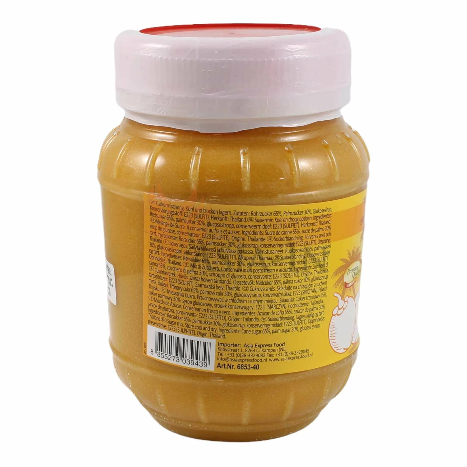 | Zutaten: | Rohrzucker 65%, Palmzucker, 30%, Glucose-Sirup, Konservierungsstoff: Natriumdisulfit E223 |