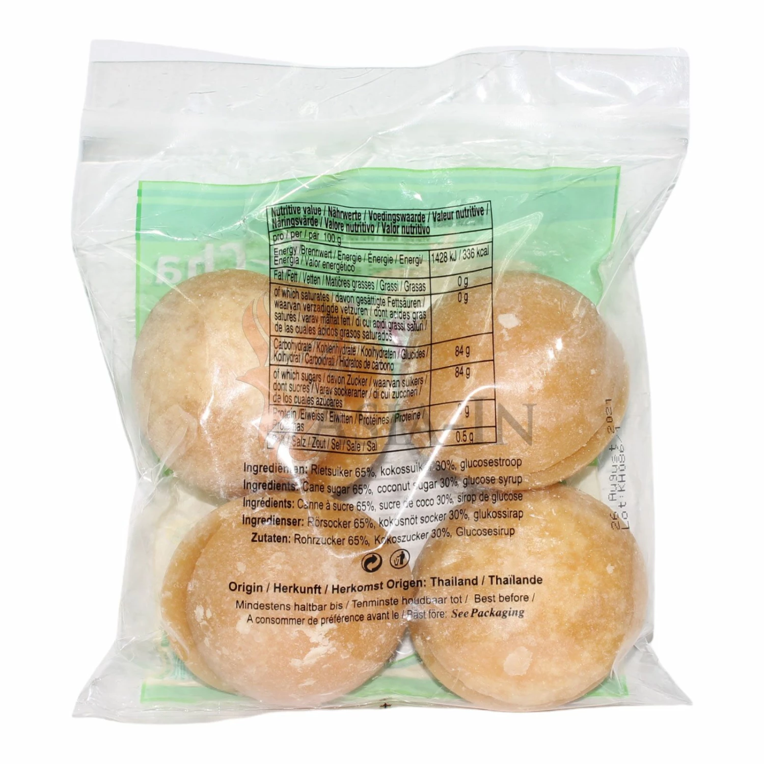 | Zutaten: | Rohrzucker 65%, Kokoszucker, 30%, Glucose-Sirup |