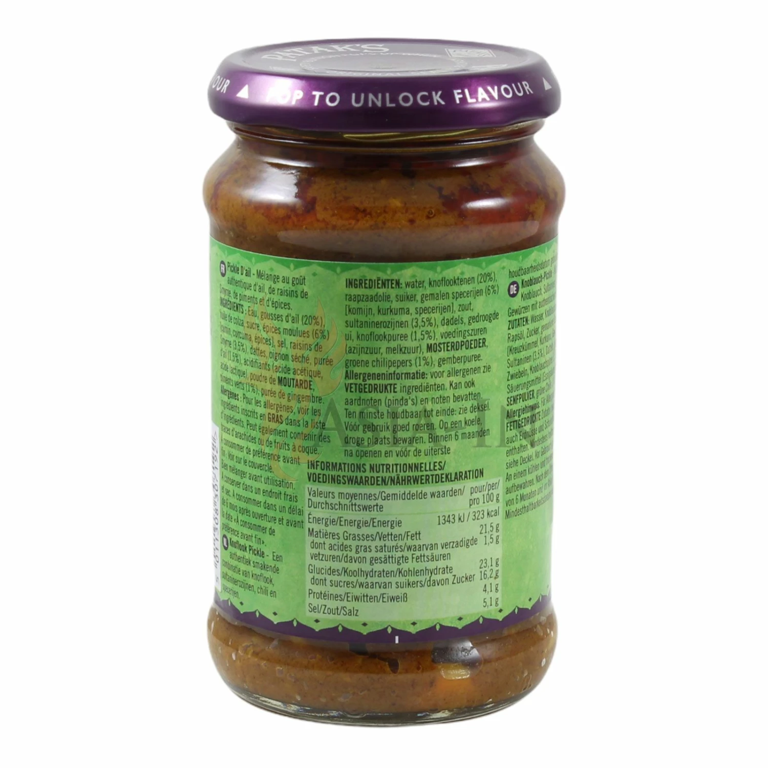 | Zutaten: | Wasser, Knoblauchzehen, 20%, Rapsöl, Zucker, Gemahlene, Gewürze, 6% (Kreuzkümmel, Kurkuma, Gewürze), Salz, Sultaninen, 3,5%, Datteln, getrocknete Zwiebeln, Knoblauchpüree, 1,5%, Säuerungsmittel: Citronensäure E330, Säuerungsmittel: Milchsäure E270 |
