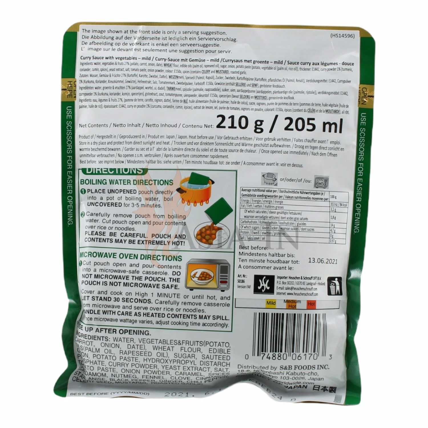 S&B Currysauce Mild, Mit Gemüse 205ml