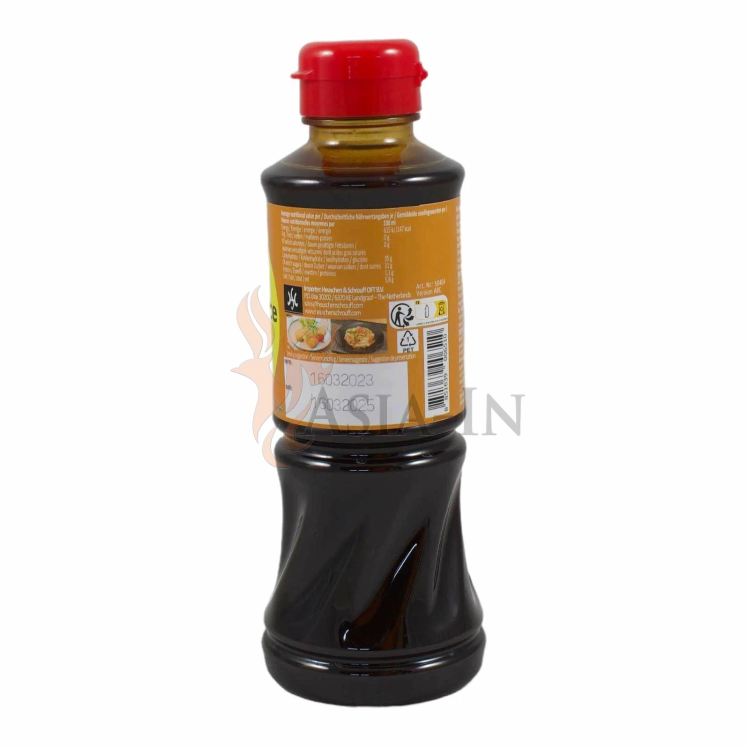 | Zutaten: | Brühe (Zwiebeln, Knoblauch, Lorbeerblätter, Gewürznelken, Zimt, Wasser), Rohrzucker, Branntweinessig, Wasser, Tomatenmark, Salz, Mangopüree, Sojasauce (Wasser, Sojabohnen, Salz, Modifizierte Tapiokastärke, Geschmacksverstärker: Mononatriumglutamat E621, Farbstoff: Ammoniak-Zuckerkulör E150c, hydrolisiertes Sojaeiweiß, Gewürzpulver (Thymian, Salbei, Muskatnuss, Ingwer, schwarzer Pfeffer, roter Chili), Verdickungsmittel: Xanthan E415 |