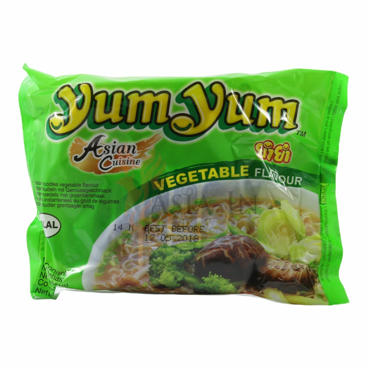 Die Geschmacksrichtung Gemüse erhält ihr würziges Aroma durch Zutaten wie Knoblauch, Zwiebeln, Karotten und Zwiebelblätter. Außerdem wird die Würzmischung der Gemüse Yum Yum Suppe mit Aromen von Sellerie und Sojamehl, Pfeffer und getrocknetem Seetang verfeinert. Als Online Shop für Asia Food bieten wir Ihnen selbstverständlich auch andere Geschmacksrichtungen der bekannten Yum Yum Instant Nudel Suppen.